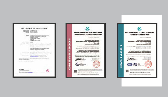 柯赛标识拥有专业的标识深化设计团队、标牌工程团队和销售团队,工厂面积达37000+平方米,以及500多台专业生产设备,实现了标识系统生产的专业化、标准化、模块化。柯赛标识在深圳宝龙专精特新产业园区投资建设了集合研发总部、创新实验室和智能标识新基地。联合调研考察、打包物流、安装施工等全产业链条服务,通过成熟的项目沟通和责任管理机制,打造品质发光字工程并快速按期交付。