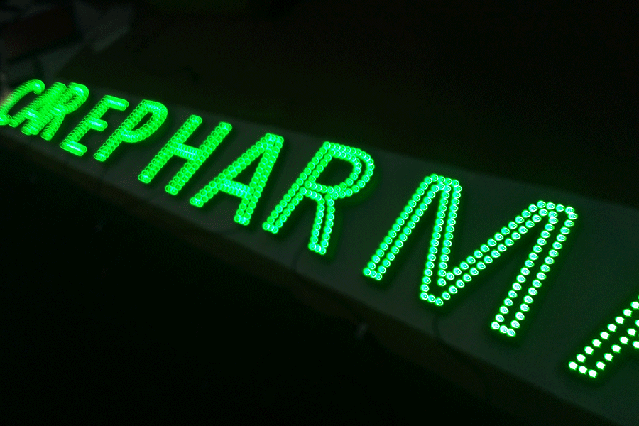 楼顶发光字经常会在高楼大厦上看到,字体很大放在很高的地方,故称为楼顶发光字。今天柯赛给大家介绍楼顶冲孔发光字的制作工艺流程: