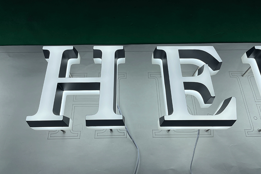 2,迷你发光字标识标牌设计制作字壳的侧面(围边)可以是金属(与面板同色)或者透明的亚克力。如